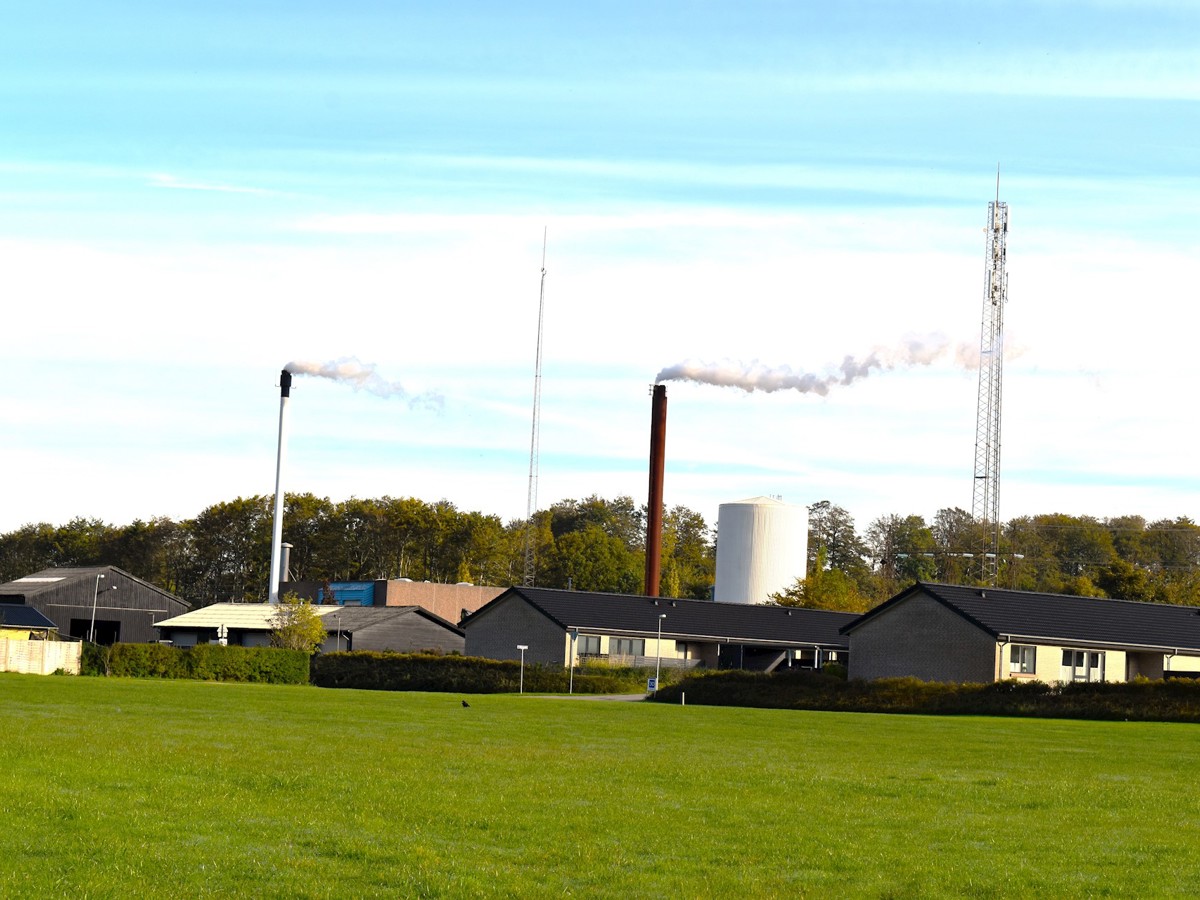 På billedet er der røg fra begge skorstene. Det betyder, at vinterkedlen er startet, og det er lige før sommerkedlen bliver slukket.